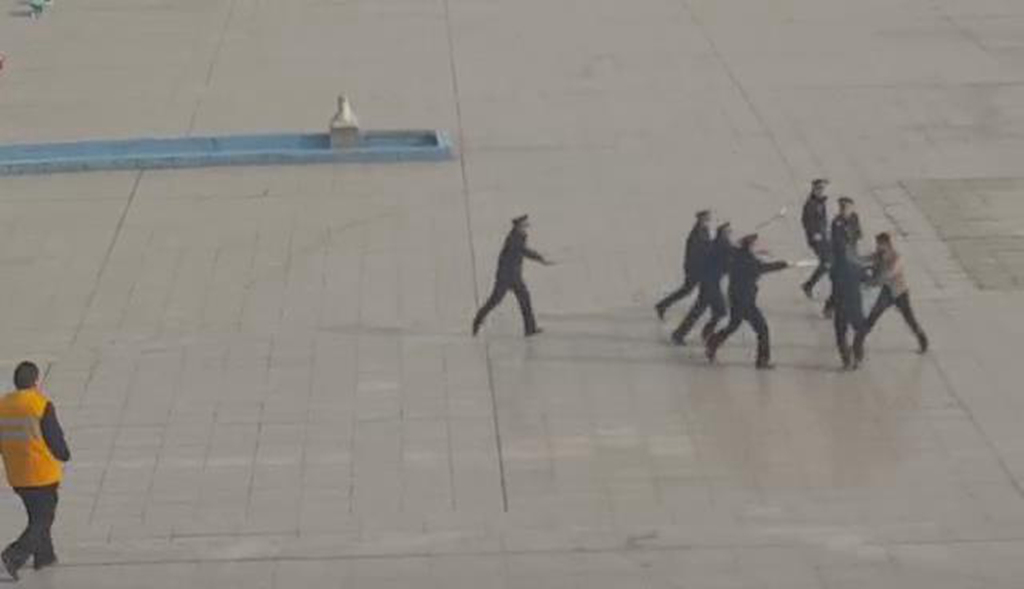 1月19日上午,两名形迹可疑人员闯进宁西铁路西峡火车站站前小广场,火车站工作人员发现后,迅速报告给火车站执勤民警。民警带领火车站治安巡逻队员赶往现场对两人进行盘查时,两人突然抽出砍刀上前砍杀。