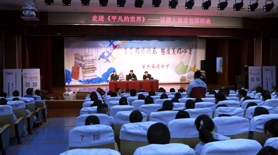 3月12日,畅读新媒体携手超级制作人,与陕西人艺版话剧《平凡的世界》部分主演一起走进北京二中亦庄学校,开展了一场名为“走进《平凡的世界》——话剧主演进校园”的分享活动。到场的分享嘉宾是来自剧中孙少平的扮演者张晋、田晓霞的扮演者聂力、田润生的扮演者邓一男,三位演员和同学们就话剧创作及角色演出心得进行了深入的交流。