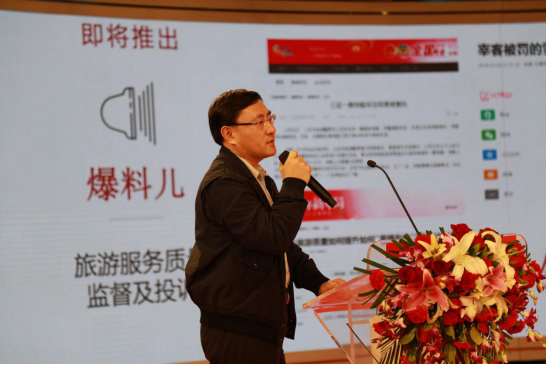 《国家人文历史》杂志社总编辑、百代旅行董事长王翔宇介绍人民日报客户端旅游频道的栏目 同时,人民日报客户端旅游频道还将与各地方旅游局、业内权威机构、垂直行业媒体、旅行自媒体、资深旅行达人等展开密切合作,共同打造优质内容聚合平台。