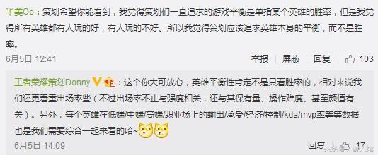 王者荣耀的英雄角色遭改动已经不是什么新鲜事。那么是什么样的因素,导致了英雄遭重做呢?当大家都以为是胜率导致了英雄重做的时候,王者荣耀策划在微博上爆出了英雄重做内幕。 王者荣耀策划Donny在微博上与网友互动时表示, 可以看出,王者荣耀在英雄改动上,更看重的是英雄的出场率而非胜率。 |