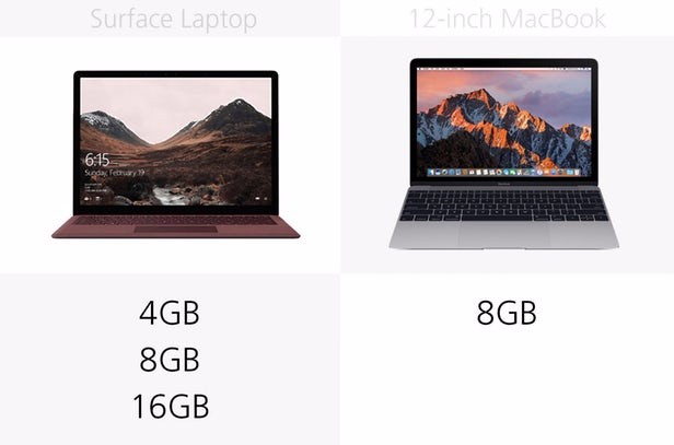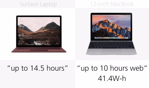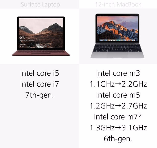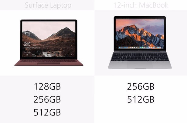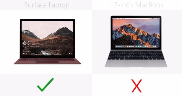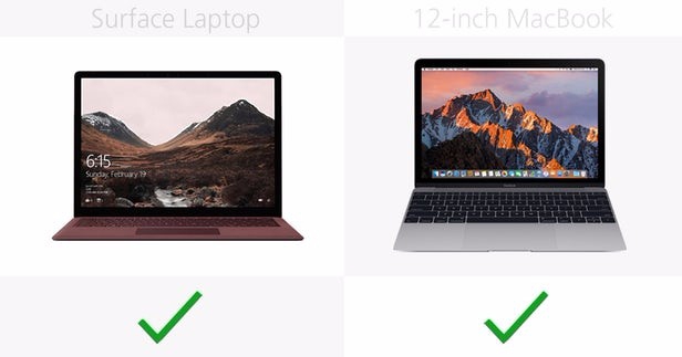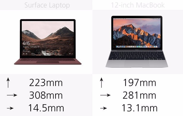 Surface Laptop和12英寸MacBook