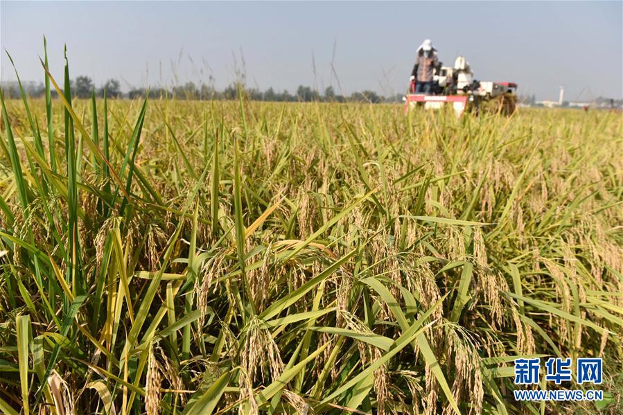 10月8日,安徽省巢湖市中垾镇建华村农民在收割水稻。寒露时节,各地水稻、玉米等农作物陆续进入收获期。 新华社发(马丰成 摄)