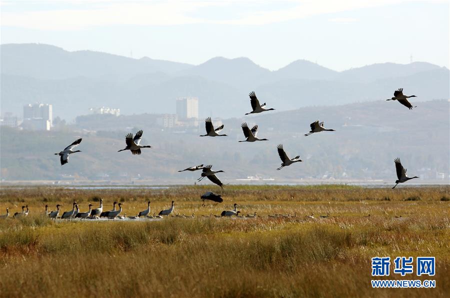 这是在贵州威宁草海国家级自然保护区拍摄的黑颈鹤(11月16日摄)。