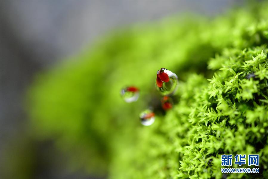 这是4月15日在湖北省宣恩县一处河堤上拍摄的“开花”的苔藓。新华社发(宋文 摄)
