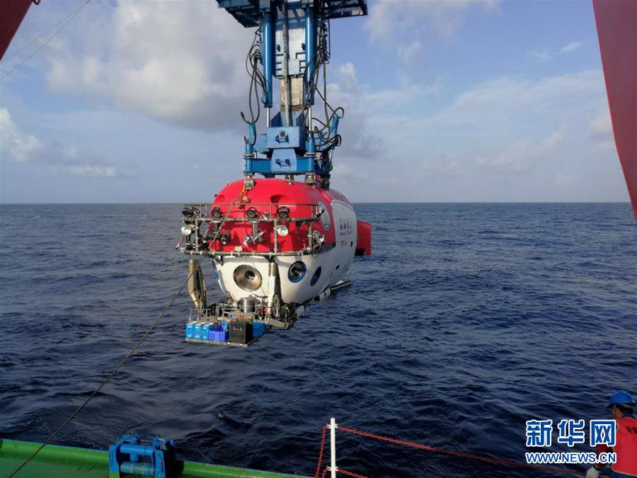 这是4月20日拍摄的载人深潜器“深海勇士号”执行第一次下潜任务(资料照片)。正在西沙群岛北礁海域进行的我国首次深海考古调查连日来进展顺利,在23日执行第四个潜次的过程中发现并带回本次调查的第一个文物标本——一个陶罐。新华社记者 施雨岑 摄