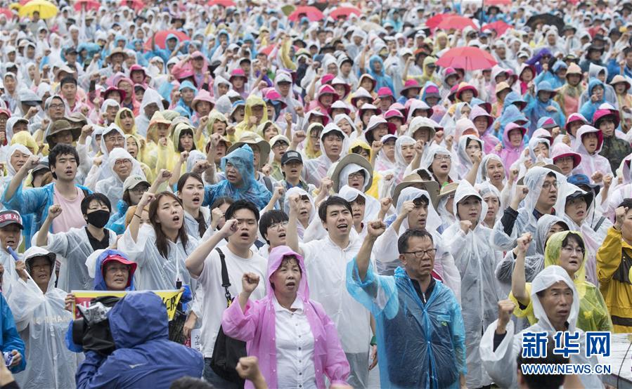 数千名韩国民众15日在首都首尔参加大规模反对萨德、反对韩美军演的和平游行示威活动。
