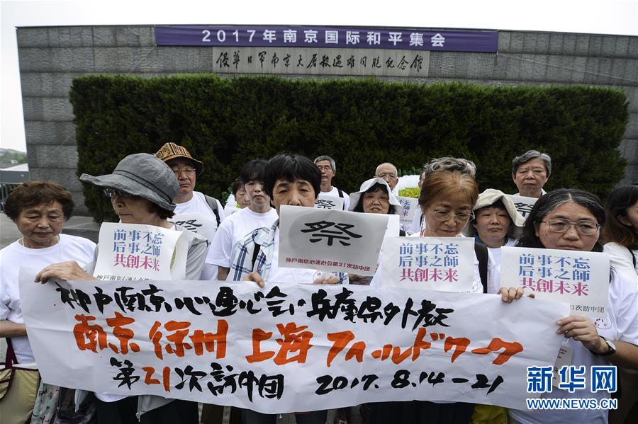 8月15日,日本“神户·南京心连心会”第21次访华团成员在和平集会上。