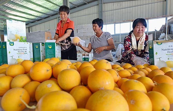 5月24日,河北省新河县众乐现代农业合作社的社员将刚采摘的甜瓜装箱外销。 近年来,国家级扶贫开发重点县——河北省新河县为加快群众脱贫步伐,引导农民种植大棚葡萄、错季大棚蔬菜等农产品。据了解,该县目前建设的以大棚葡萄、错季大棚蔬菜和瓜果为主的现代设施农业达3万多亩,已实现3.45万名群众稳定脱贫。 新华社记者 杨世尧 摄 |