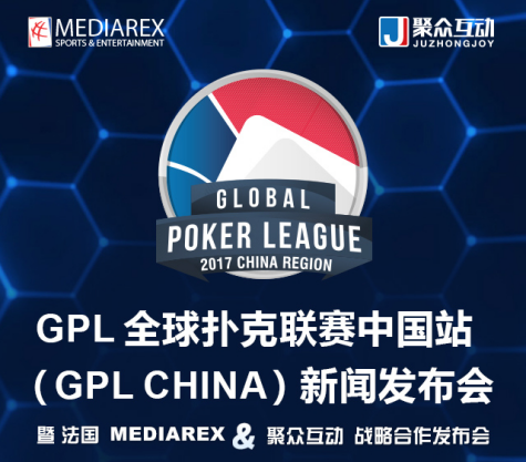 由法国Mediarex体育&娱乐公司与聚众互动联合召开的,GPL全球扑克联赛中国站新闻发布会将于5月31日正式召开。发布会上将宣布聚众互动与法国Mediarex体育&娱乐公司的长期战略合作,同时全球扑克联赛中国站将正式启动。