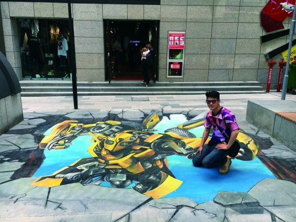 ![]() 本报讯 近日,在贵阳市西滨河商业街,一群小伙子手拿画笔,在地面上绘制奇特的“3D立体地画”。眼看变形金刚立体画“破地而出”,路人纷纷驻足拍照。 乍一看这种立体地画,只觉得色彩斑斓,细细看来才能体会它的神奇——你看到的不是一幅平面图,而是一幅很具立体感的画。这一边,变形金刚的机械长腿伸出地面,一脚踏来;那一边,地上裂出一个深深的井口,下方暗流涌动,“大黄蜂”正冲破地面向外飞来…… 街头作画的小伙子们,是来自贵阳雅典娜壁画坊的年轻画师。画坊负责人关兴介绍,3D立体地画是源于西方街头文化的一种地画形式,观察者不借助任何眼镜和视觉处理设备,就能看到很具立体感的图像,也就是常说的“裸眼3D”效果。特别是站在正面对画作拍照时,照片上的3D效果真假难辨。 “相对于国外而言,我国的立体地画发展还比较滞后,贵阳更是处于立体地画起步阶段。这样大规模的街头地画创作,会对贵阳的地画文化、街头艺术起到一定带动作用。”关兴说。 (本报记者 汤欣健 文/图) 关兴的立体地画——变形金刚大黄蜂正“冲破地面飞向街道”。 |