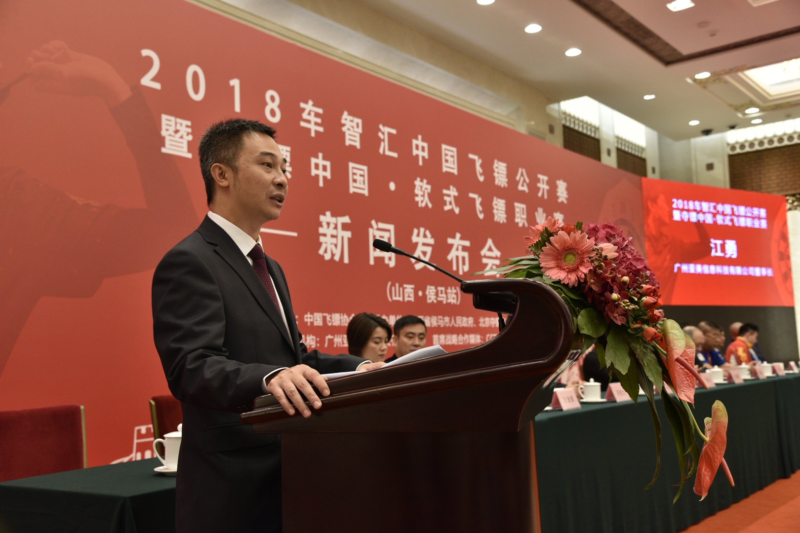 活动现场 9月26日,2018车智汇中国飞镖公开赛暨夺镖中国 软式飞镖职业赛新闻发布会在北京举行。本次活动是由广州亚美信息科技有限公司(以下简称“亚美科技”)独家冠名,亚美科技总裁江勇出席了本次活动。 现场,亚美科技总裁江勇表示,飞镖运动崇尚“专注”,飞镖选手排除外界干扰,专注于飞镖的投掷。飞镖运动的特性与亚美科技车智汇的‘小盒子、大智慧 ’有异曲同工之妙。亚美科技成立7年以来,亚美科技的研发和管理团队以工匠精神一直专注和深耕于车联网数据的研究及应用,基于提取车主用户需求为基础而打造汽车产业生态链的车联网大数据,花费大量时间和精力终于研发出“车智汇”这个核心产品。
