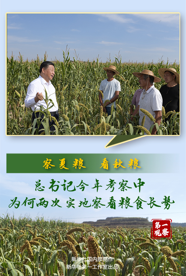 ![]() 9月13日,习近平总书记在陕西榆林考察调研。他来到米脂县银州街道高西沟村,走进田间地头察看农作物长势。碧绿的田野,充满了生机勃勃的希望。 ![]() 新华社记者 李学仁 摄 今年5月,习近平总书记在河南南阳考察途中,特地走进一处麦田察看小麦长势。看到丰收在望,总书记说,夏粮丰收了,全年经济就托底了。 ![]() 2021年5月13日下午,中共中央总书记、国家主席、中央军委主席习近平在河南省南阳市淅川县考察南水北调工程。这是途中,习近平临时下车走进麦田察看小麦长势,了解夏粮生产情况。新华社记者 王晔 摄 两次实地察看,关注同一个主题——粮食收成。上次看夏粮,这次看秋粮。 夏粮的主体是小麦。今年我国夏粮已丰收到手,克服低温、干旱、强降雨、病虫害等影响,夏粮产量达到2916亿斤,比上年增产59.3亿斤,再创历史新高。同时,今年早稻总产量560.4亿斤,比上年增加14.46亿斤,增长2.7%。 夏粮和早稻产量约占全年粮食的25%,大头还在秋粮。秋粮收成如何,重要性不言而喻。 当前,主要秋粮作物已经进入成熟后期,农谚讲“七月十五定旱涝,八月十五定收成”。今年秋粮生产基础较好,特别是玉米等高产作物面积增加较多,除河南外,全国大部分地区灾害发生程度轻于上年,秋粮长势较好。 农稳天下安。今年是“十四五”开局之年,全面推进乡村振兴要开好局、起好步,稳住了粮食,才能为开启全面建设社会主义现代化国家新征程提供有力支撑。在疫情和气象灾害等加剧世界粮食生产波动的背景下,更加需要保障国内粮食安全,夯实稳住农业基本盘。 “要牢牢把住粮食安全主动权,粮食生产年年要抓紧。”在去年底召开的中央农村工作会议上,习近平总书记如此说。总书记还提出了“要严防死守18亿亩耕地红线”“把黑土地用好养好”“加快推进农业关键核心技术攻关”等明确要求。 围绕保障粮食安全,从思路到举措,全面发力、加快部署—— 去年12月召开的中央经济工作会议将解决好种子和耕地问题作为两个关键点,指出保障粮食安全关键在于落实藏粮于地、藏粮于技战略。 今年中央一号文件进一步从实行粮食安全党政同责,扩大稻谷、小麦、玉米三大粮食作物完全成本保险和收入保险试点范围,开展粮食节约行动等诸多方面进行具体部署。 今年4月,习近平总书记在广西考察时指出,要严格实行粮食安全党政同责,压实各级党委和政府保护耕地的责任,稳步提高粮食综合生产能力。 今年7月,习近平总书记在主持召开中央深改委第二十次会议时强调,“把种源安全提升到关系国家安全的战略高度,集中力量破难题、补短板、强优势、控风险”。 …… ![]() 2020年10月18日在河北省滦州市古城街道蒋庄村拍摄的稻田(无人机照片)。新华社记者 牟宇 摄 14亿多人口大国的粮食问题,是一个“永恒课题”。再过几天,我国将迎来第四个“中国农民丰收节”。在这个特殊时间点再到田野中“看粮”,显示出粮食安全在习近平总书记心中沉甸甸的分量。 如今人们对美好生活的向往总体已从“有没有”转向“好不好”,粮食等农产品供给也要向优质、绿色和特色发展,实现从吃得饱到吃得美味、健康的转变。不管是大宗粮食作物还是小杂粮,都要在品种培优、品质提升、品牌打造和标准化生产上全面发力,使中国饭碗不仅端得稳,而且能品出一碗好饭的中国味道。 监制:赵承 策划:张旭东 主笔:于文静、黄玥 统筹:张晓松、王绚、齐中熙、白洁 视觉 | 编辑:吴晶晶、张惠慧、包昱涵 新华社国内部制作 新华社第一工作室出品 |
