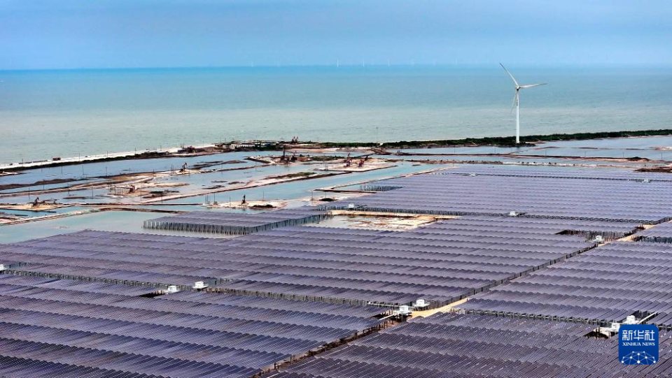 这是8月8日拍摄的山东省东营辰耀垦东光储一体化示范项目(无人机照片)。 近年来,山东省东营市积极发展清洁能源,探索“油光互补”模式,盘活胜利油田闲置土地,于2025年5月建成总装机容量300兆瓦的东营辰耀垦东光储一体化示范项目,年发电量可达4.8亿度,相当于减少标煤消耗14.6万吨。新华社记者 郭绪雷 摄 |