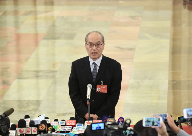 3月12日,十二届全国人大五次会议在北京人民大会堂举行第三次全体会议。这是司法部部长张军接受采访。新华社记者 赵颖全 摄