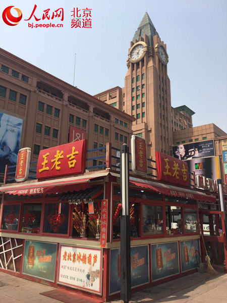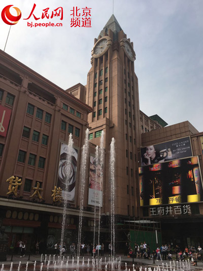 在全长约800米的王府井步行街上,分布着形态不一、色彩各异的10家水吧。人民网 鲍聪颖摄