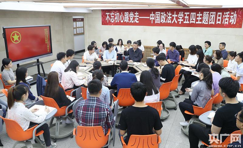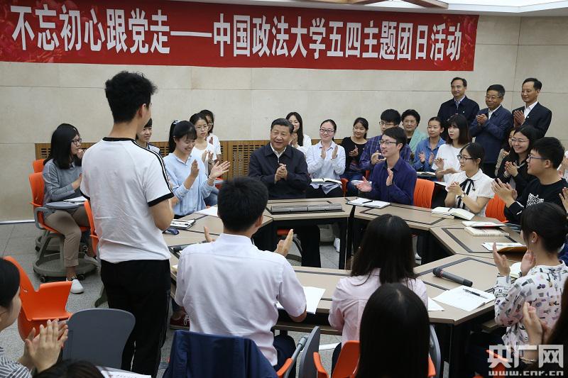 新华社记者王晔 摄 习近平为中国政法大学主题团日活动点赞 习近平步入中国政法大学学生活动中心,正在这里举行“不忘初心跟党走”主题团日活动的同学们以热烈掌声欢迎总书记的到来。习近平说,如何发挥共青团的积极作用是新的时代课题,要与时俱进、积极探索。你们正在做这样的探索,我为你们的主题团日活动点赞。
