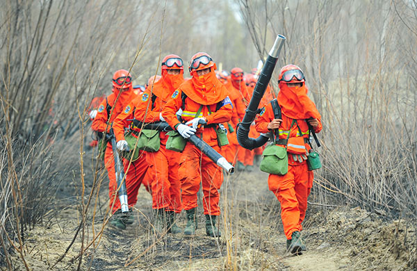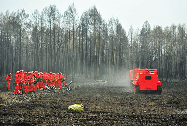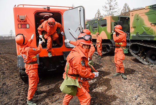 5月4日,扑火官兵准备前往火场。 当日,记者在内蒙古大兴安岭毕拉河林业局草甸森林火灾扑火前线获悉,全体扑火人员利用夜间气温下降、风力减弱的有利时机,集中优势兵力,扑救成效显著。目前,火场态势整体稳定,火势发展缓慢,火势不强,火场部分线段有断续烟点。 目前,前线已调动各方扑火力量近9000人,截至4日上午8时,已到位7010人,投入火场4310人,集结待命2700人。 前线指挥部负责人表示,下一步将根据火场态势,适时调整扑救策略和兵力部署,全线出击扑打明火。对已扑灭的地段开挖2米宽隔离带严防死守。 新华社记者 连振 摄 |
