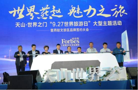 9月27日,“世界旅游日”大型主题活动暨燕赵文旅区品牌签约大会,是由石家庄市旅游发展委员会指导,河北省人大交流促进会主办,天山集团、天山·世界之门承办的,吸引了200余家国内外知名企业,数千市民共襄盛会。河北省原副省长刘建生、亚太旅游联合会副会长刘勇及秘书长唐金福、国家文化部老艺术家管理中心原副主任刘俊岩、全国文联组织联络部原巡视员李培隽、国家文化部艺术发展中心民俗文化艺术专业委员会主任沈杨、国家老龄委科技委员会原副主任李岐、河北省文化厅党委书记王离湘、河北省文联党组书记副主席解晓勇、河北省政府原省长助理/省公安厅厅长俞定海、河北省政协科教文卫委员会原主任刘进昌、中共河北省委农村工作领导小组原副组长/邢台原市委书记董经纬、河北省工商局原巡视员孙芳、河北省文联原党组书记李世文、河北省人大常委会原正厅级副秘书长/河北省人大文化交流促进会会长郭永利、石家庄市旅游发展委员会主任赵俊芳、石家庄高新区管委会副主任王树欣、天山集团董事局主席吴振山、天山集团董事局副主席吴振岭等各级领导莅临活动现场,共同见证了燕赵盛典聚焦全球的历史时刻。