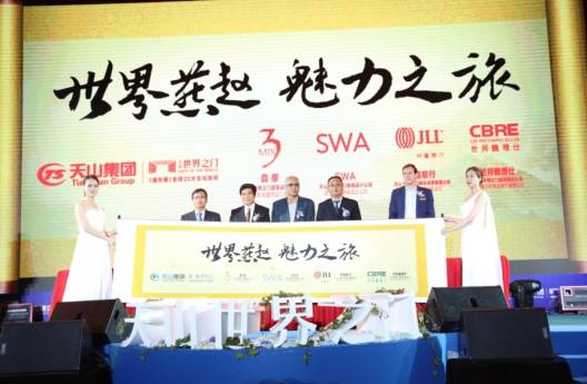 全球团队 签约鼎助 共启辉煌 据了解,此次签约还首次汇聚了全球一线房地产相关行业巨头:国际知名建筑设计单位森摩建筑;世界顶级景观公司SWA;全球“五大行”之一的仲量联行;全球最大商业地产服务公司世邦魏理仕等合作方代表联袂签约,预示着天山·世界之门迈入了全速崛起的新里程。