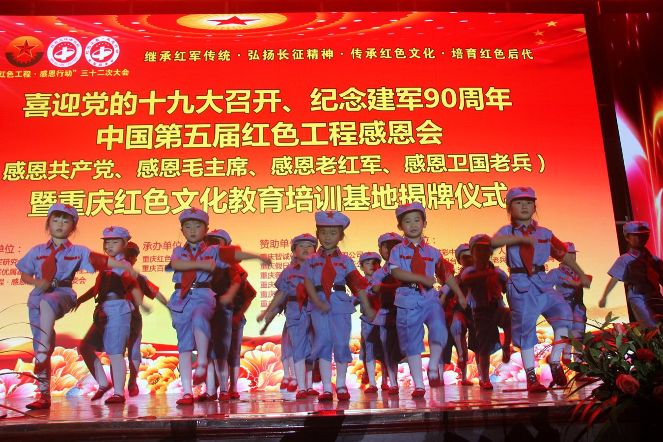 重庆2017年10月17日电(田茂国、李农、向代勇、王峰、布铁威)为喜迎党的十九大召开、纪念建军90周年,继承红军传统、弘扬长征精神、传承红色文化、培育红色后代,感恩共产党、感恩毛主席、感恩老红军、感恩卫国老兵,10月16日,中国第五届红色工程感恩会暨重庆红色文化教育培训基地揭牌仪式在重庆举行。该活动由中国萧军研究会红色文化研究院、中国拥军优属基金会红色文化工程工作委员会、“红色工程•感恩行动”全国组委会主办,重庆红色文化教育培训基地、重庆百国智科技发展有限公司承办。