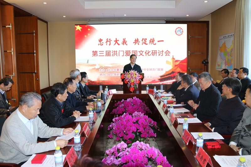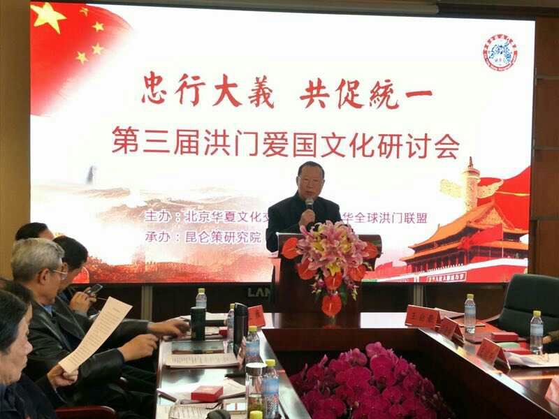 12月4日上午,由北京华夏文化交流促进会、中华全球洪门联盟共同主办的“忠行大义 共促统一”第三届洪门爱国文化研讨会在北京举行。两岸有关部门领导、专家学者和洪门代表人士出席会议,展开热烈讨论,大家响应习近平主席在中共十九大上关于 “解决台湾问题、实现祖国完全统一”的讲话精神,呼吁两岸爱国同胞和洪门昆仲行动起来,秉持“两岸一家亲”理念,牢记民族大义,强化责任担当,站在坚持“一中”、反独促统的斗争最前线,团结一致、众志成城,坚决反台独、反分裂、反倒退,维护两岸和平发展的大前提,为促进祖国完全统一和民族复兴大业早日实现而奋斗!