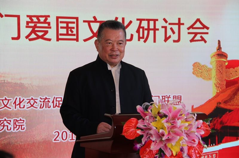 研讨会由北京华夏文化交流促进会袁雍会长主持。国务院台办原副主任、昆仑策研究会副会长王在希,北京市台办副主任杜德平到会参加研讨活动。杜德平代表北京市台办致辞,热忱欢迎来自海内外的洪门领袖代表和有关专家学者,充分肯定洪门爱国历史功绩和忠义文化传统,对十九大后两岸民间组织共同发声,坚决维护民族大义,反对台独分裂图谋,捍卫两岸和平发展大局,为实现统一祖国、振兴中华做贡献,表示高度赞扬。 全球洪门联盟总会长刘会进 全球洪门联盟总会长、中国洪门五圣山总山主、全球华人领袖联合会主席团主席刘会进先生从台湾赴京出席会议,代表海内外洪门昆仲激情致辞。他指出:本届“忠行大义、共促统一”的研讨主题,时逢习近平主席提出“解决台湾问题,实现祖国完全统一,是全体中华儿女共同愿望,是中华民族根本利益所在”这一“名实所归、必本乎真”的英明论断之时。习主席提出的“解决台湾问题”这一正本清源、返本开新的客观逻辑,无论是“正本”从根本上治理解决台海危机之意,还是“清源”从源头上彻底清理“去中国化”分裂祖国之见,抑或是“返本”对民族利益的根本追问,以及“开新”对现实问题的运筹定策,都是在运用拨乱反正对立统一的矫枉规律,为实现祖国完全统一和宁静海峡建构的重要理论基础。尤其是解决台湾问题的“解决”二字,更是在台湾统一和回归祖国的问题上,既要处置“急独派”或“渐进独立”意识分裂祖国的狂妄,又要解决岛内一些人缺少“中国人意识”的精神障碍。 他强调:解决台湾回归祖国怀抱的问题,是“天地之常理,古今之通义”。孙中山先生早就断言:“中国是一个统一的国家,这一点已牢牢地印在了我国的历史意识之中”,习近平主席更是殷切地指出:“几千年来,中华民族始终追求团结统一”。 刘会进表示:“实现祖国完全统一”不仅是还原一个国家完整体的身份意识,更是一个民族坚定命运共同体的认同感。一个国家如果缺少了这种文化认同,必然是一盘散沙四分五裂。历史告诉我们,每个人的命运都与国家的命运联系在一起,国家好大家才能好。中国是一个多民族的国家,洪门兄弟又遍布在世界近百个国家,多民族和不同地域的洪门兄弟之所以能够紧密地连在一起抒写保家护国民族史歌,就是洪门兄弟有一个共同的“忠以报国,义以待民”的忠义精神,正是这种强烈的为中华民族根本利益而奋斗的生命境界,我们又在新时期建构了《全球洪门联盟文化发展战略》。既要用顶层的战略擘画,梳理不统不武麻痹统一大业的乱丝和剖破反华势力极力阻挠两岸统一的混沌乱局,又要让洪门兄弟对台湾现状做出江山一统的正确判断和认识。用“大道之行天下为公”的生命理想和文化自信美好憧憬的精神,形成洪门新时代笃定天下大义的豪迈气度,形成洪门佑我中华播撒两岸一家亲的种子,形成洪门使命维新计天下利、求万古名的新气象。