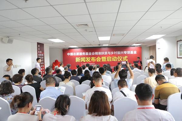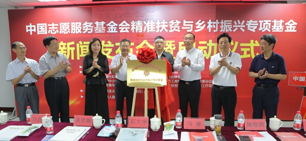 为贯彻落实党中央关于打好精准脱贫攻坚战的决策部署,助力脱贫攻坚,2018年6月5日,由中国志愿服务基金会和京津冀民营企业扶贫联盟的代表企业北京圣火集团共同发起的精准扶贫与乡村振兴专项基金新闻发布会暨启动仪式在中国志愿服务基金会举行。中国志愿服务基金会理事长石大华、常务副理事长吴世雄、副理事长兼秘书长姚桂清,中国志愿服务联合会研究中心主任许启大,北京市扶贫协作和支援合作工作领导小组办公室副主任崔洪涛,京津冀民营企业家扶贫联盟执行主席王丰,以及50余家企业和40余家新闻媒体记者出席了启动仪式。