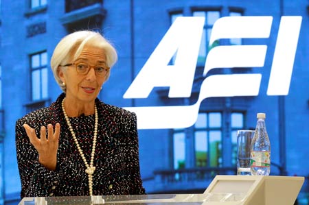 图为当日拉加德在美国智库企业研究所发表讲话。新华/法新