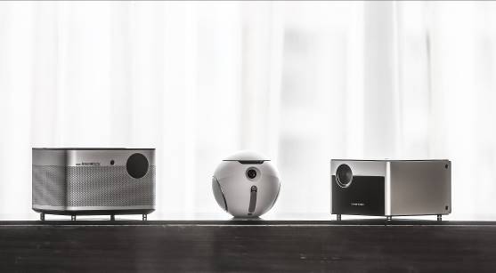 图为极米此次发布的三款新品,从左到右分别为H1S、imea儿童无屏电视和Z5
