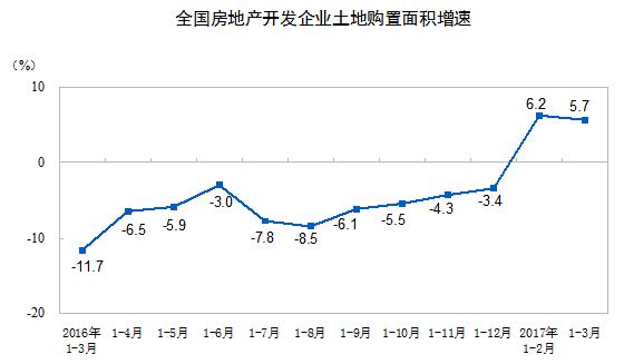 1-3月份,房地产开发企业土地购置面积3782万平方米,同比增长5.7%,增速比1-2月份回落0.5个百分点;土地成交价款1359亿元,增长16.7%,增速提高4个百分点。