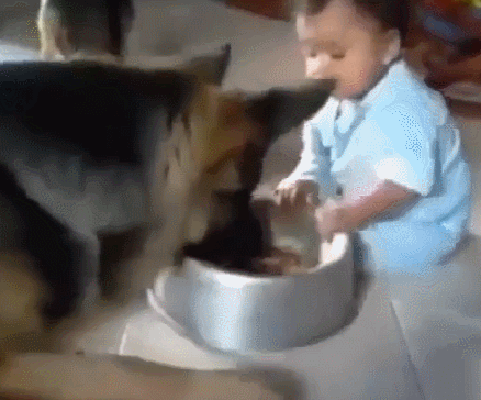 德牧在吃饭,宝宝一直抢狗碗往嘴里送,狗狗反应让人笑哭了 这位网友家里有一只很可爱的德牧以及一只顽皮地小宝贝。小宝宝再看见自家大狗正在吃东西时很是好奇,想也不想的伸手那鬼狗狗的碗。几个月大的宝宝好奇心一般来说都很重,它在看见德牧在吃饭十分十分起劲的样子便十分好奇,他也不害怕家里的这只大狗狗,毫不犹豫地爬了过去凑近些想要看看狗狗在吃些什么。