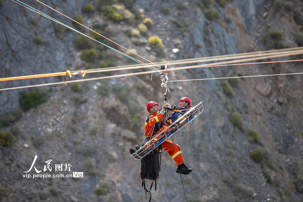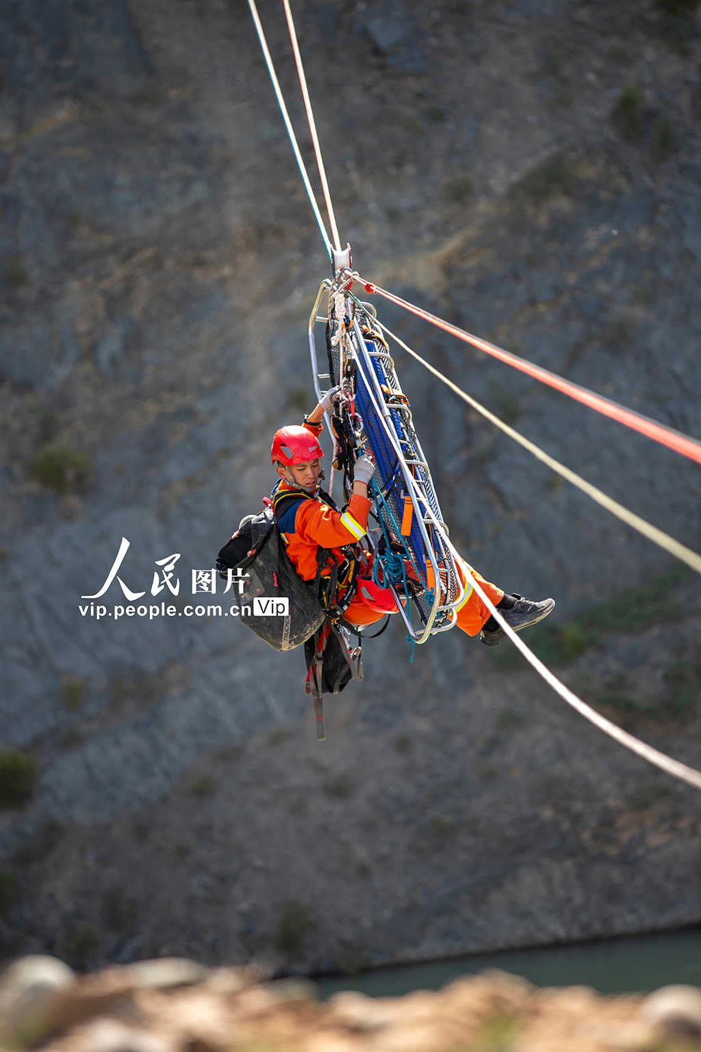 2025年8月12日,甘肃省森林消防总队张掖支队在甘州区鹰落峡组织开展高空绳索救援实战化训练,重点锤炼指战员在陌生复杂环境下的应急救援能力。景旭鹏摄(人民图片网) |
