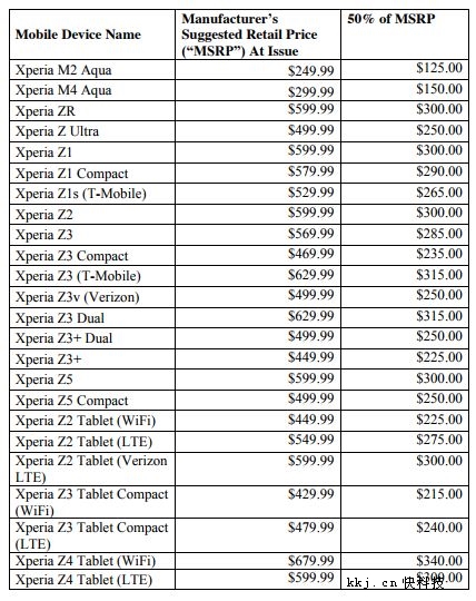 同时,这些用户如果曾经向索尼申请过进水维修服务被拒,那么可以获得产品原价50%的补偿金,其中Z3机主的补偿金最高,达到315美元(约合2098元),最低的也有125美元。