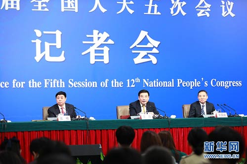 3月11日,十二届全国人大五次会议新闻中心举行记者会,邀请工业和信息化部部长苗圩、副部长辛国斌和总工程师、新闻发言人张峰就“推进实施‘中国制造2025’”的相关问题回答中外记者的提问。