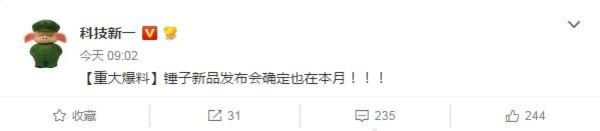摘要:时间已是4月中旬,从节气上来看春天马上就要过去了,但罗老师口中的春季发布会却依然没有半点动静。网络中关于锤子新机的谍照、爆料已有很多,但随后老罗又全部否认,但现在关于锤子春季新品发布会又有了新消息:就在本月! 据@科技新一爆料,锤子新品发布会就在本月,但具体是哪天还不清楚。两天前小米官方宣布将于本月19日举办发布会,小米6即将登场,此外,魅族也将在本月26日发布新品魅蓝E2,再加上锤子,这是准备正面刚了吧。 关于新机,老罗已经明确否认不是T系列,且新机为塑料机身没有骁龙835,那么应该是坚果系列没跑了。如果爆