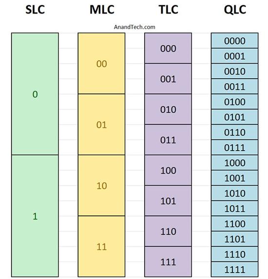 事实上,经过厂商不断的改进,TLC技术已经十分成熟,无论性能还是寿命都可以满足日常消费甚至企业级应用,目前几乎绝大多数消费级SSD都在用它。 QLC闪存由于采用了四比特设计,每个单元内都有多达16种不同的电压状态,相比TLC又翻了一番,而且又不能把单元面积做的太大,因此控制难度急剧增大。