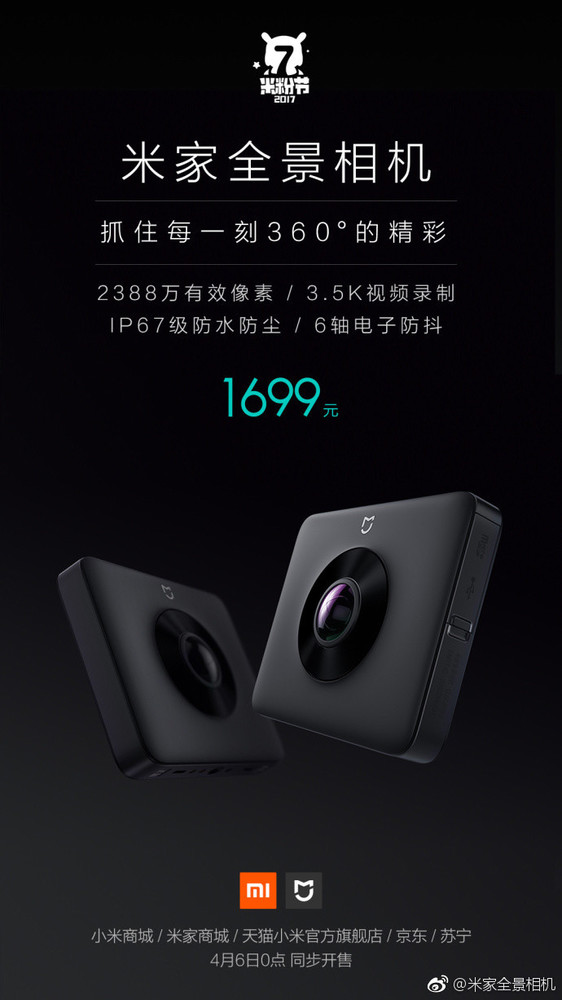 米家全景相机发布 6轴电子防抖/1699元