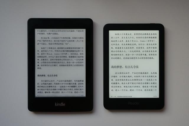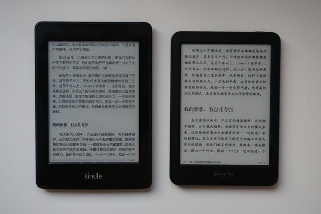 文章开头提到现在人们的时间往往被工作所占据,读书要么是利用通勤路上的零碎时间,要么就是下班回到家静静阅读,所以对不少夜猫子而言,电子书的背光是不可缺少的功能,而且背光除了晚上有用,在光线不好的白天也能提高阅读体验。iReader给阅读灯预置了熄灯、白天、夜间、被窝四个选项,同时用户也可以自定义亮度。 作为喜爱数码产品的阅读爱好者,iReader自然不会是我第一次接触的电子书产品。手边的Kindle已经陪我走过了4个年头,在国内还未上市便通过海淘购买的Kindle Paperwhite,当时其搭载了背光是我购买的最主要的原因。这次恰好与iReader可以对比一下,首先得说明,这台Kindle是在多看系统下的展示,两者无论是在背光完全关闭的状态还是全亮状态,iReader里显示的文字细腻度都完胜Kindle,而且在亮度上iReader也更胜一筹。都打开同一本书的情况下(均为在内置商店购买的正版书籍),iReader的排版明显更加美观。