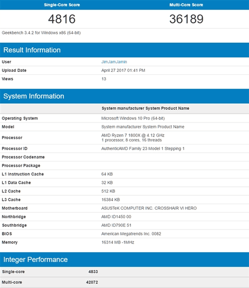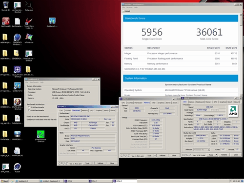 前者得分6034/47032,后者超频4.1GHz得分4816/36189,默频3.6GHz得分4387/34637。 超频后: