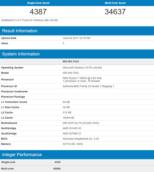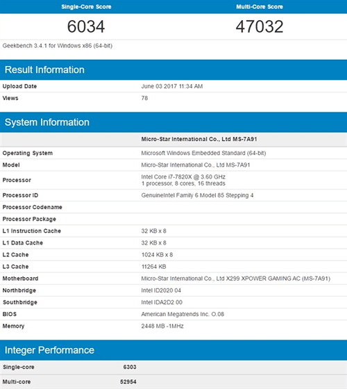 今天,GeekBench 3上出现了Core i7-7800X和i7-7820X的成绩,有用户还拿它和同核心数的Ryzen处理器进行了对比。 i7-7800X是一款六核处理器,主频3.5GHz,热设计功耗140W,售价389美元。对比找来的是Ryzen 5 1600X六核,主频3.6GHz。