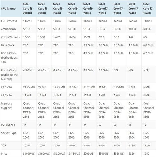 Intel刚刚发布的Skylake-X平台除了包含Core i9,还对i7进行了更新。