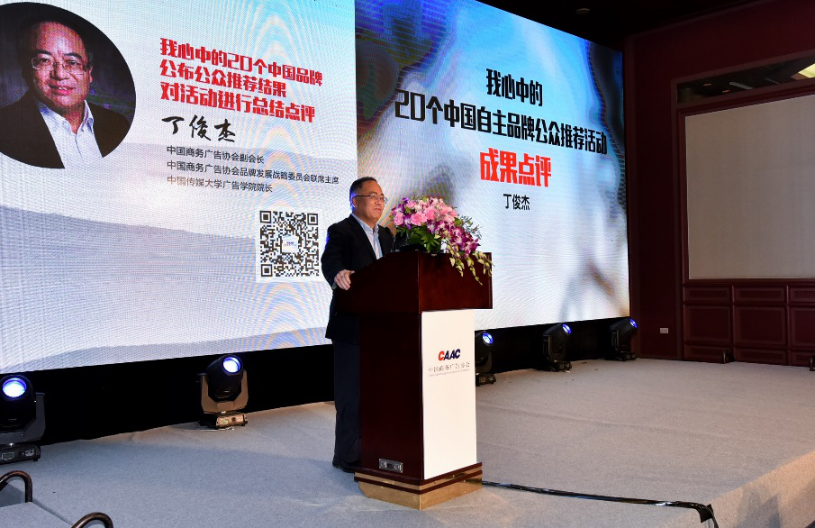 为响应习近平总书记及国务院关于“推动中国产品向中国品牌转变”的号召,推动中国自主品牌的成长与发展,助力中国自主品牌走向世界,中国商务广告协会于2016年12月19日至31日发起了《我心中的20个中国品牌》公众推荐活动。活动邀请中国广告智库全体专家推选自己心中的20个中国自主品牌,从专家推选结果中,选出前50个品牌作为公众推荐的备选品牌名录,社会据此评选出自己喜爱的20个中国自主品牌。活动受到大众的广泛关注和积极参与,作为峰会的重要环节之一,中国商务广告协会副会长、中国传媒大学广告学院院长丁俊杰教授代表中国商务广告协会对此次公众推荐结果进行了公布,最终收到有效推荐90050次,鲁花荣获榜首。