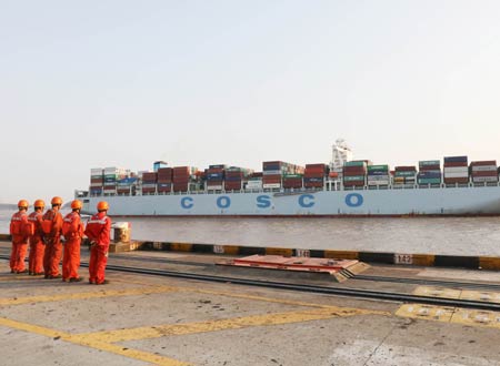 15日18时许,中国远洋海运集团旗下的“中远荷兰”号在经过天津、大连和青岛之后,缓缓驶入上海洋山深水港。 作为一艘超大型集装箱货轮,“中远荷兰”号长366米、宽51米、高67米,一次可装载13386个标准集装箱。它装载能力强,油耗水平低,总体性能优越,达到国际同类型船先进水平。 在古代,产自中国的部分丝织品、茶叶、瓷器等通过海上丝绸之路行销海外;如今,“中远荷兰”号搭载着高附加值的电子产品、家电等产品远赴欧洲,架设起不同市场间互通有无、优势互补的新时代贸易之桥。新华社发 |