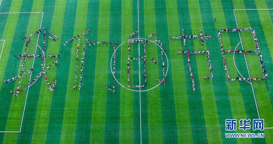 5月3日,江苏扬州大学广陵学院百名青年学子齐聚操场,拼出“我们的节日”字样,迎接五四青年节,传递青春正能量。 新华社发(司新利 摄)