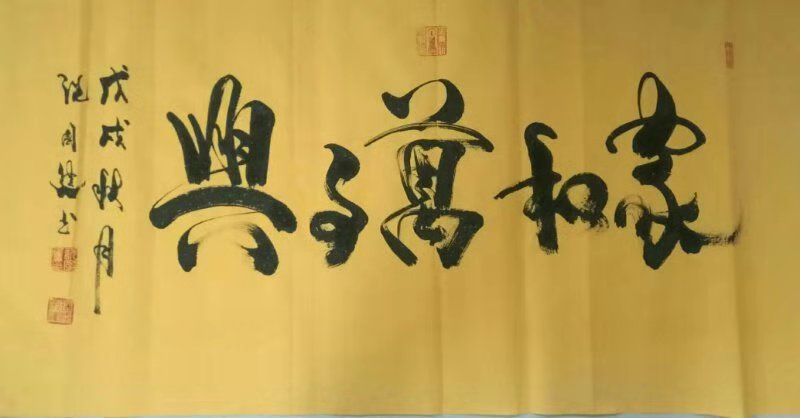 大字难写是精神,非有一般激情和气度难状其象。字如其人,看气脉,看气象,写心胸,写情怀。望着黄河滚滚的奔向东南,惊涛澎湃着的黄河,掀起万丈狂澜,浊流宛转,结成九曲连环;从昆仑山下奔向黄海之边;把中原大地劈成南北两面。祝国进先生用他那亮剑的精神,黄河奔腾般的心胸,积极乐观的情怀,在宣纸徽墨间,用寸管颖毫书写出专属于自己的绚丽人生。