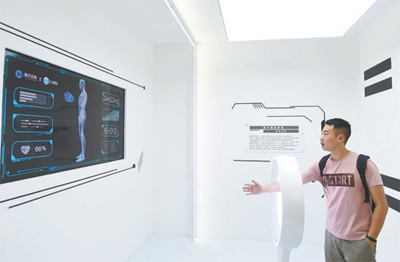 观众在首届中国国际智能产业博览会上体验医疗人工智能产品。新华社发