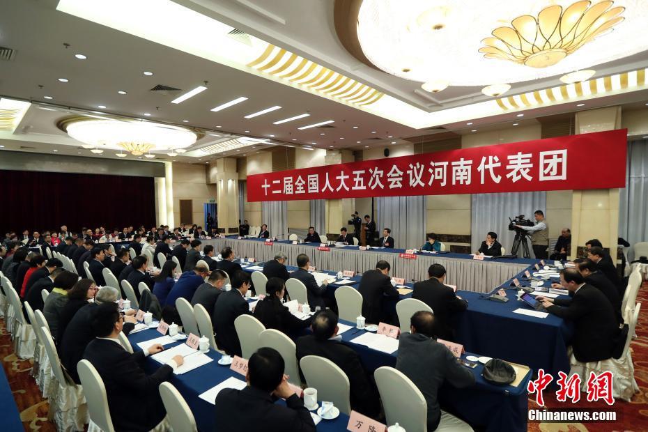 发布时间:2017-03-08 浏览: 次 作者:大河网 3月7日,十二届全国人大五次会议河南代表团开放日接受媒体采访。 中新社记者 盛佳鹏 摄 3月7日,十二届全国人大五次会议河南代表团开放日活动对媒体开放。图为全国人大农业与农村委员会副主任委员郭庚茂(左)和河南省委书记谢伏瞻在会上交谈。 中新社记者 盛佳鹏 摄