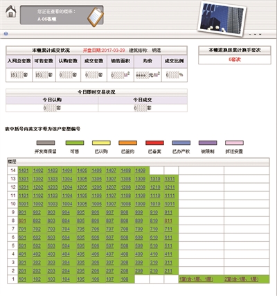 为此,记者在南京市网上房地产查询了电建地产海赋尚城的房源情况。公示信息显示,2017年3月28日,电建地产海赋尚城领取了A-05栋和A-06栋两栋楼的销售许可证,除去商铺外,这两栋楼的公寓房源共有309套,全部显示为绿色的“可售”状态。