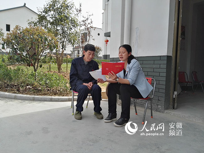 余静在为贫困户介绍扶贫工作措施