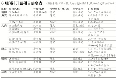相比于5月仅9个项目的入市意愿,6月份北京计划入市的住宅项目有一定增长。